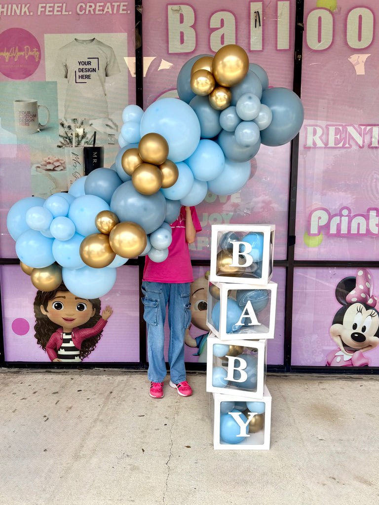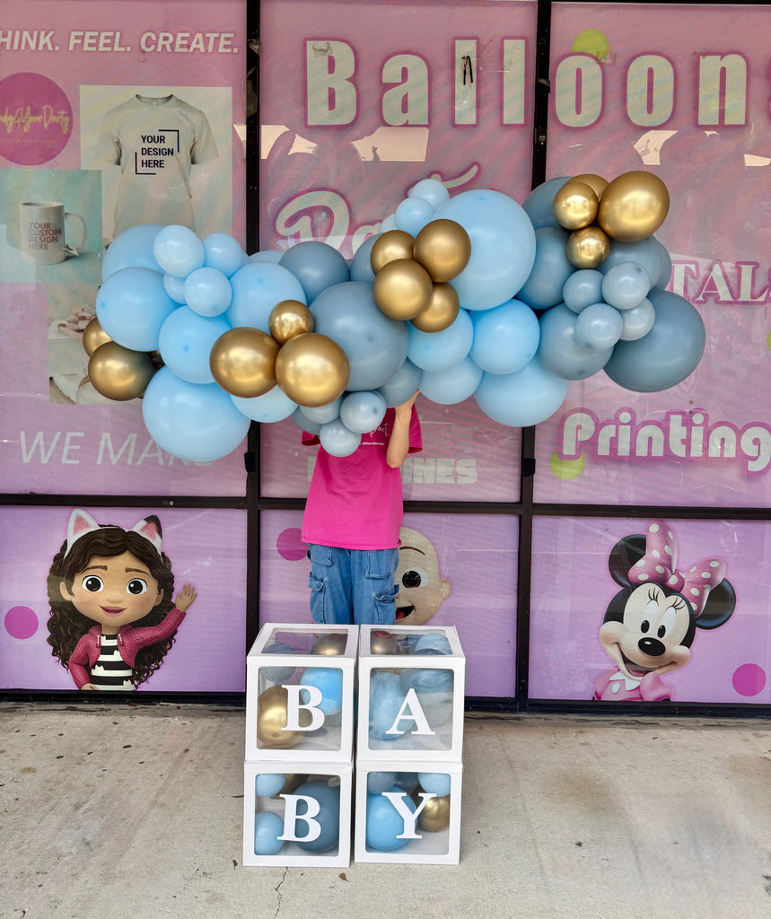 “It’s a Baby! Balloon Garland with BABY Blocks”