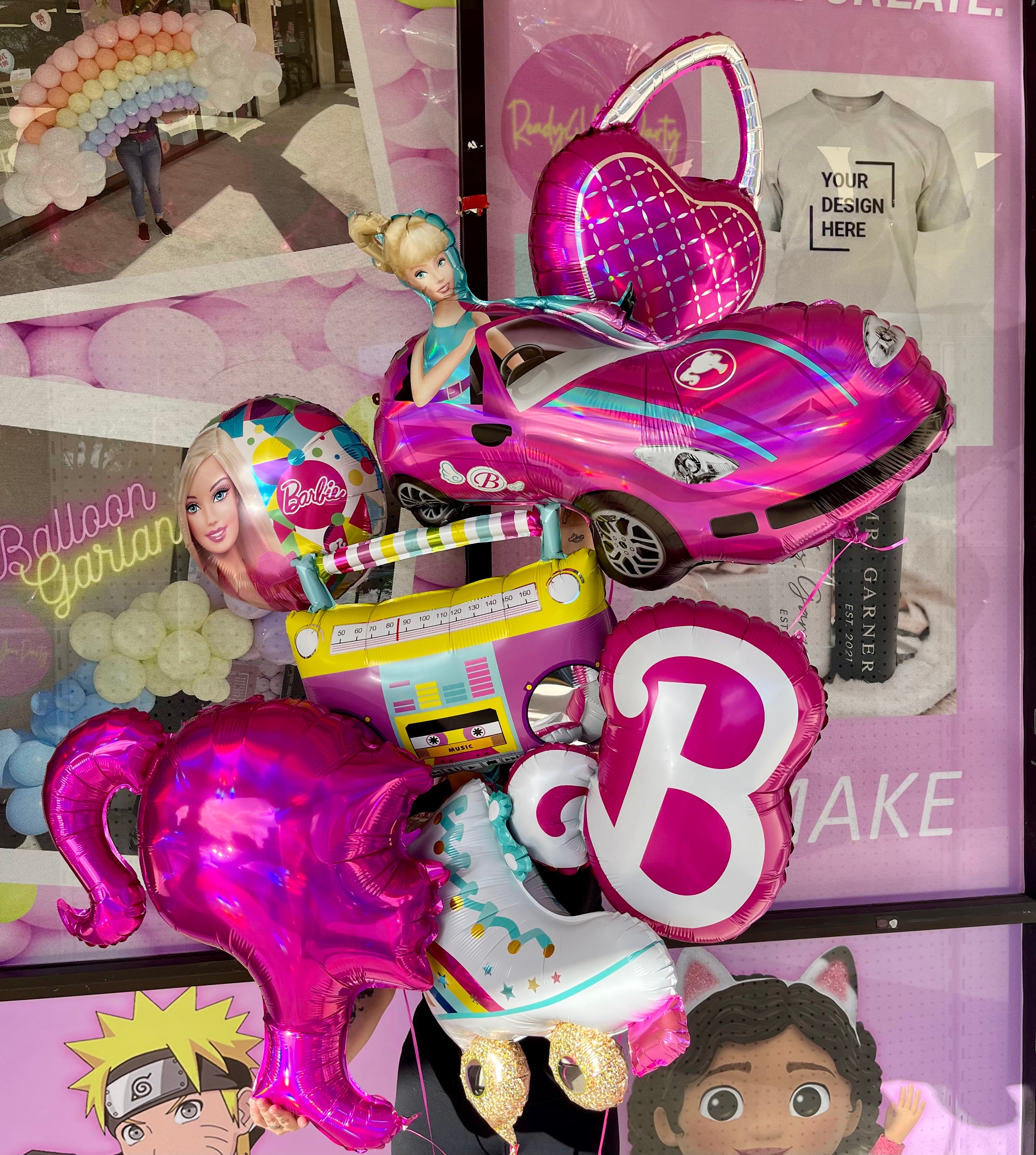 Barbie balloon bouquet - With helium is backordered and will ship as soon as it is back in stock.