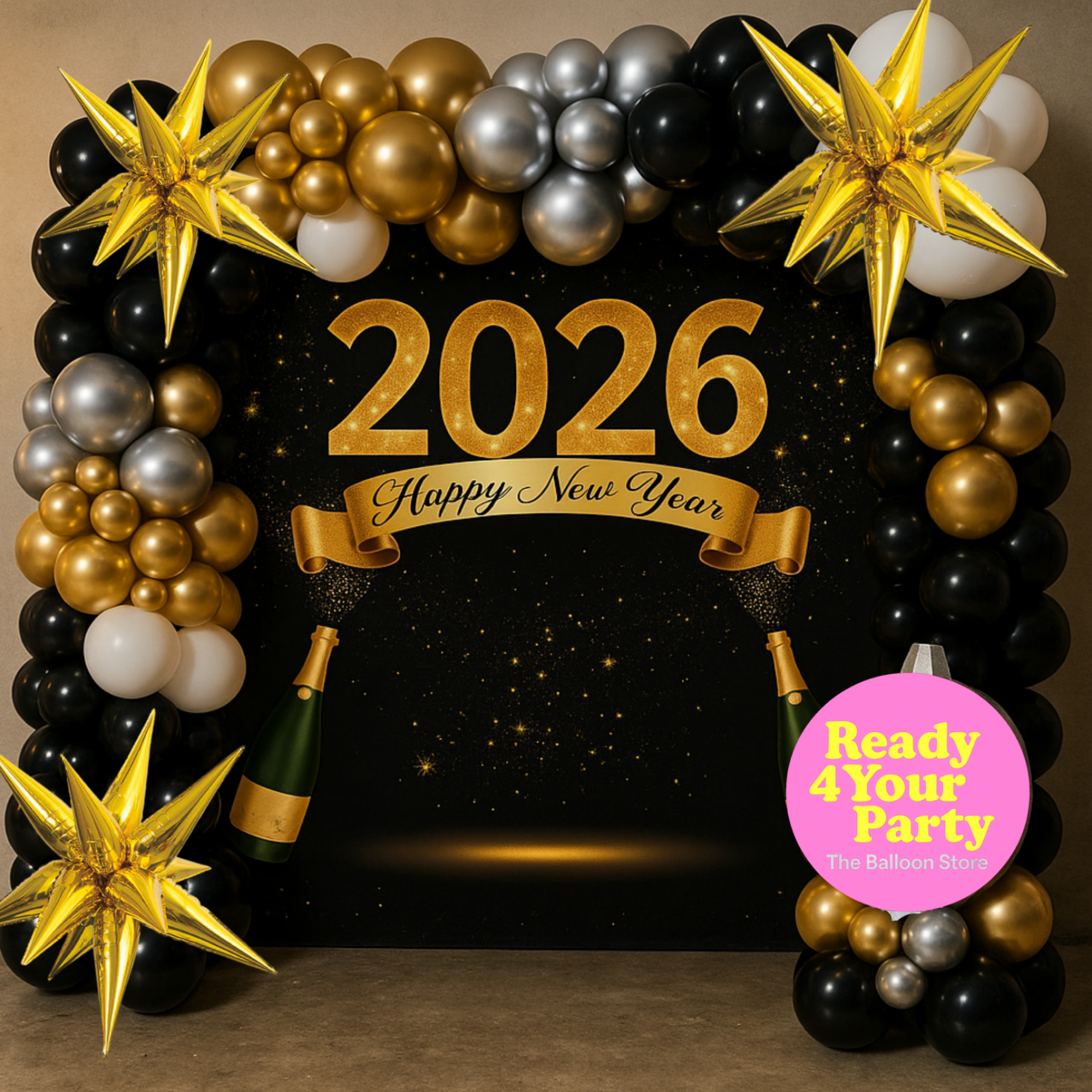 New Year Balloon Backdrop Setup | 2026 Celebration Decor is backordered and will ship as soon as it is back in stock.