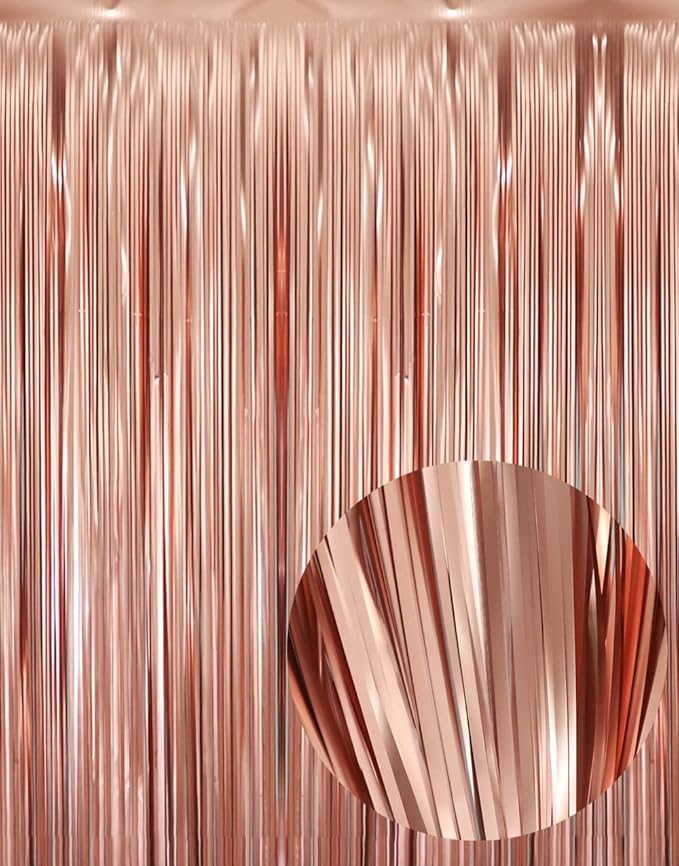 8x3 feet Foil Fringe Curatins - Rose gold is backordered and will ship as soon as it is back in stock.