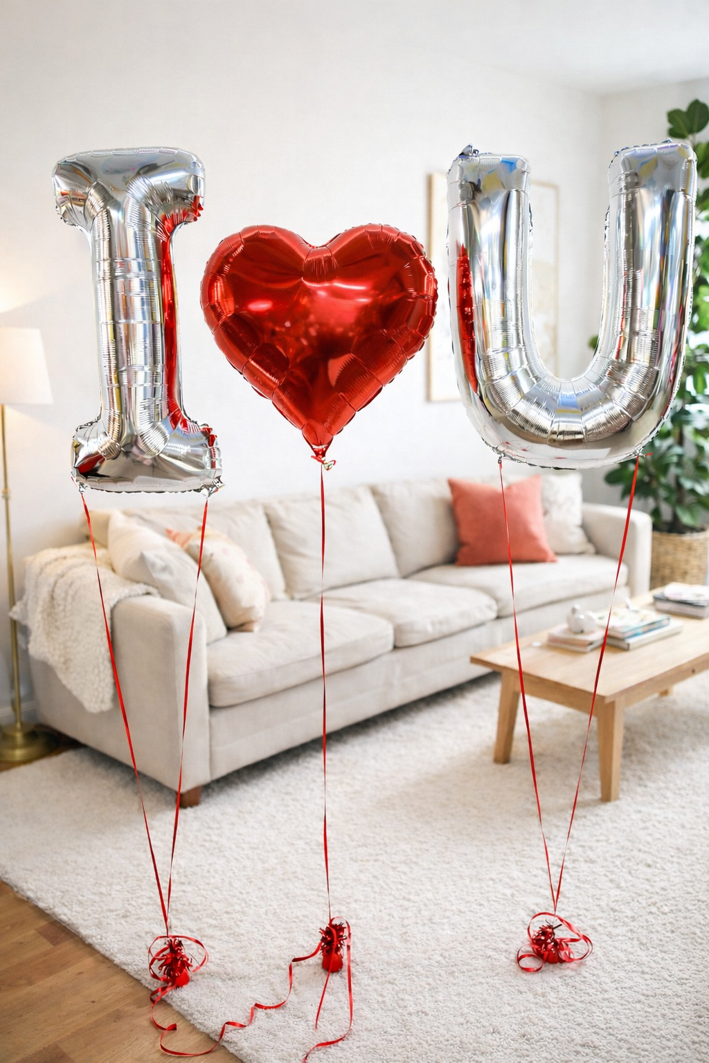 I Love U Balloon Bouquet, a romantic balloon arrangement designed to make hearts melt instantly. Featuring oversized silver letter balloons spelling I ♥ U with a glossy red heart centerpiece, this floating bouquet is the perfect surprise for Valentine’s Day, anniversaries, proposals, or romantic gestures.
