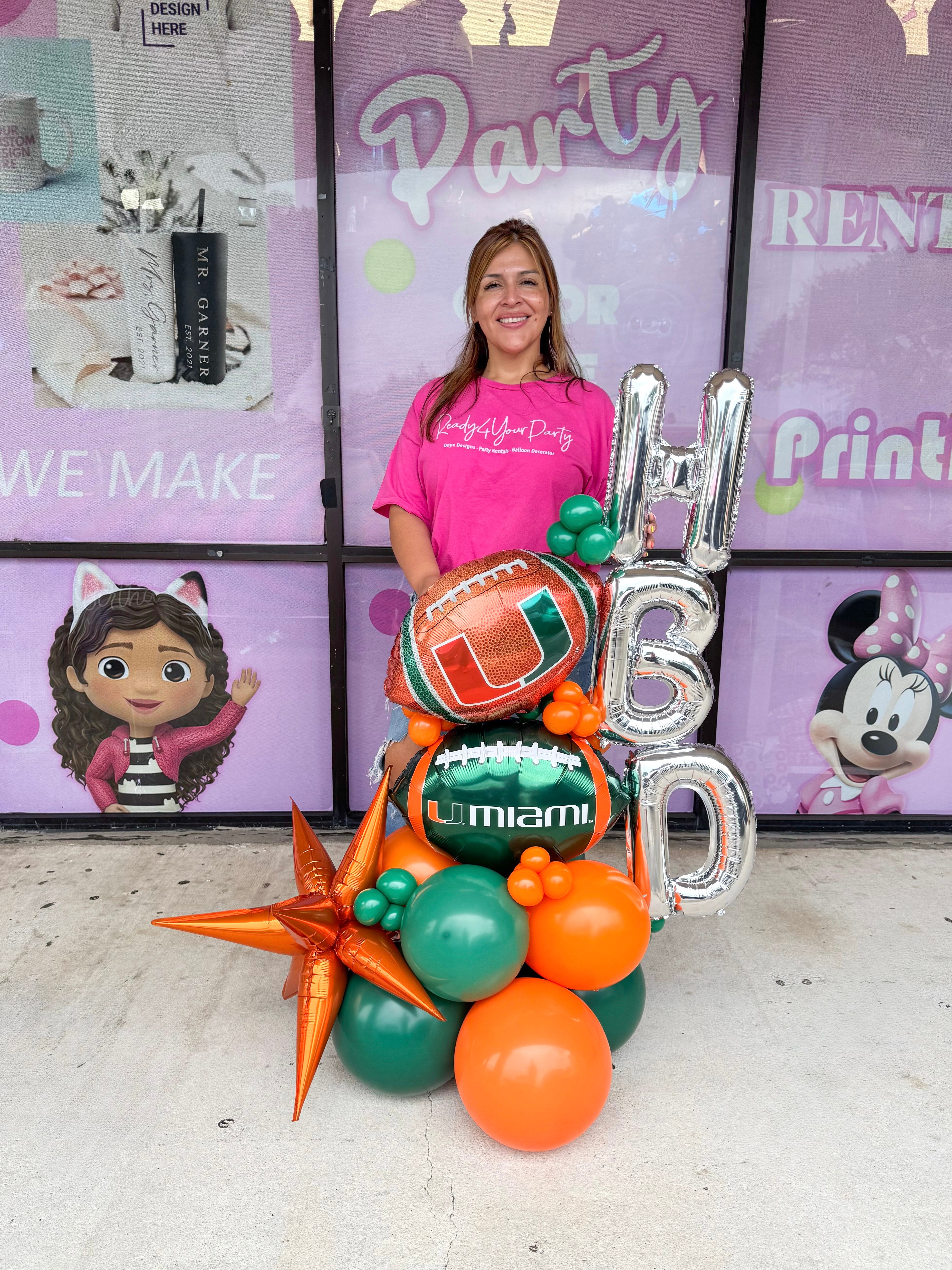 - “Game day or graduation, our U Miami balloon stack brings the perfect pop of orange + green. Celebrate like a true Cane! 🏈🎉”