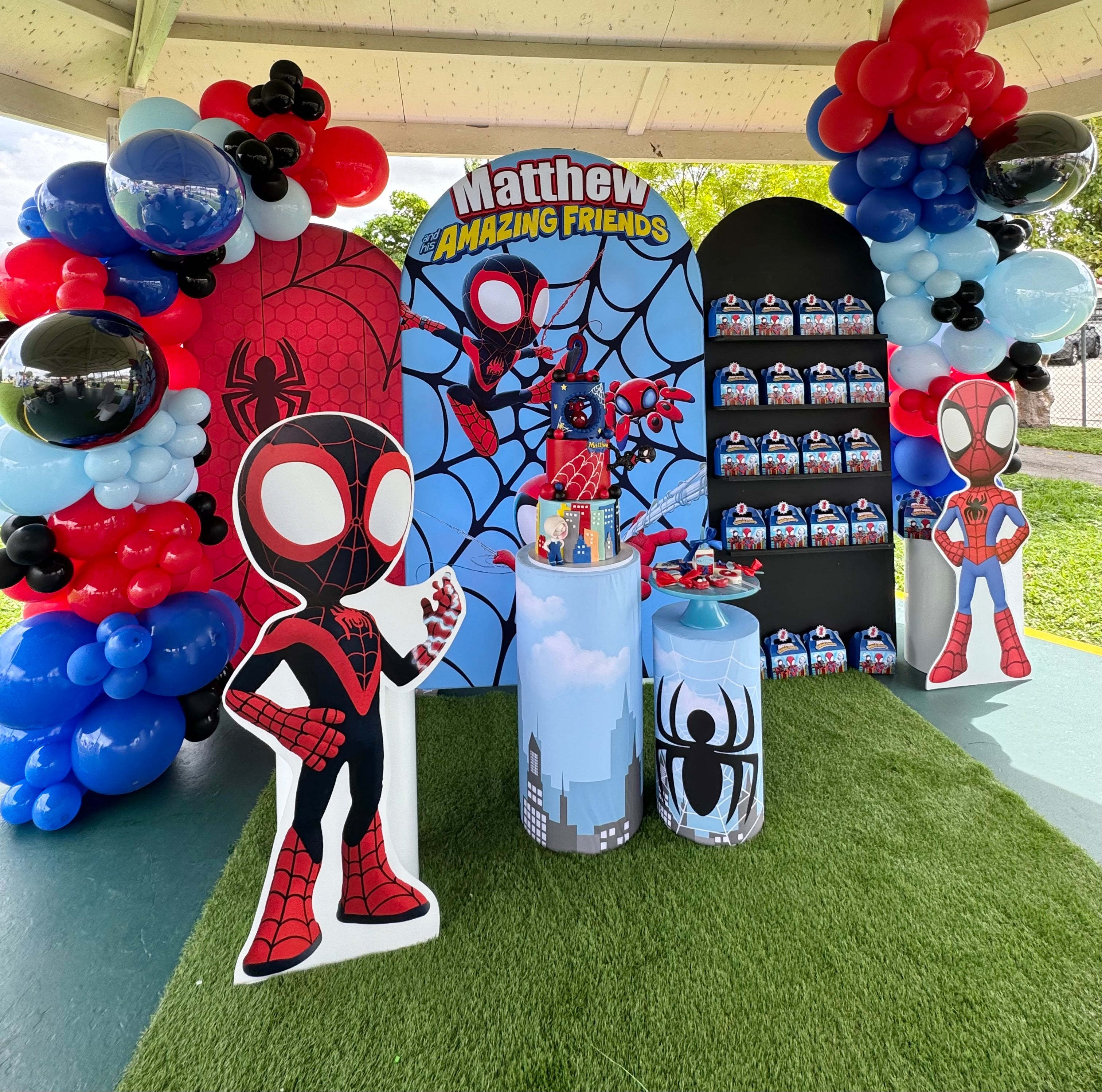 Transform your event with our Spider Theme Balloon Décor! This package includes a custom balloon setup and a treat wall—perfect for creating a spooky, fun atmosphere your guests will love.